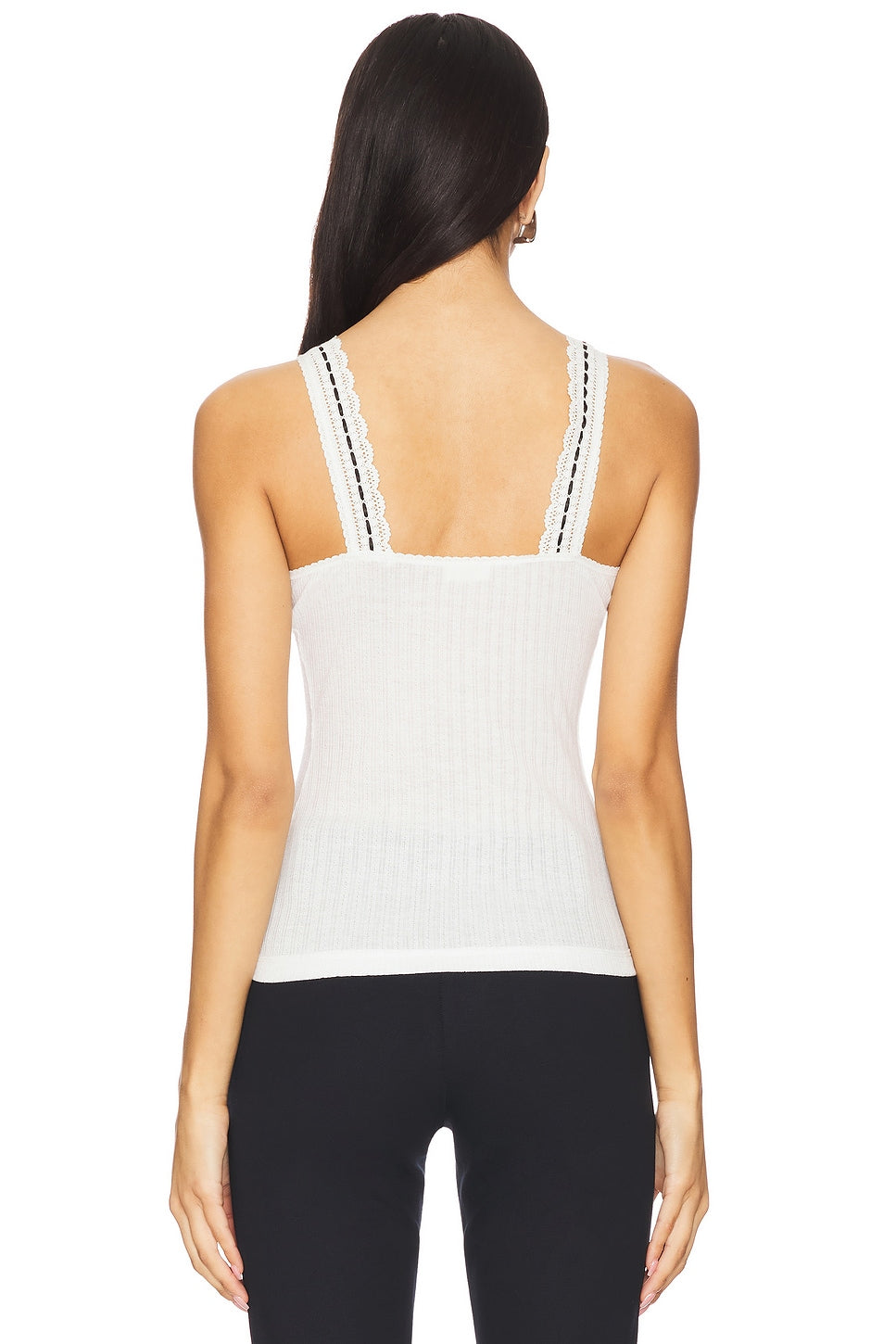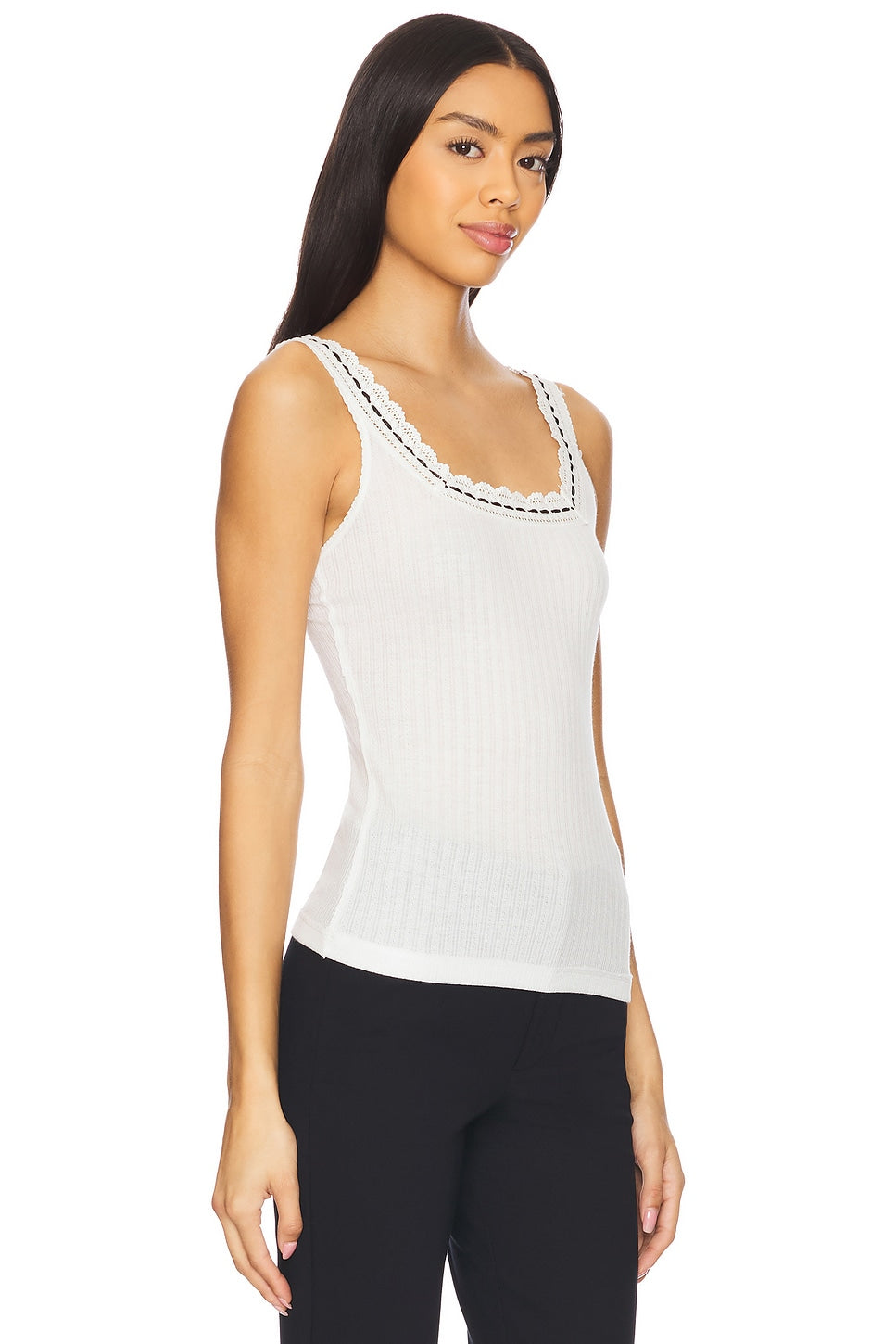 So simple with sweet details, this classic tank is featured in a sheer ribbed cotton knit with ribbon-adorned lace trim.