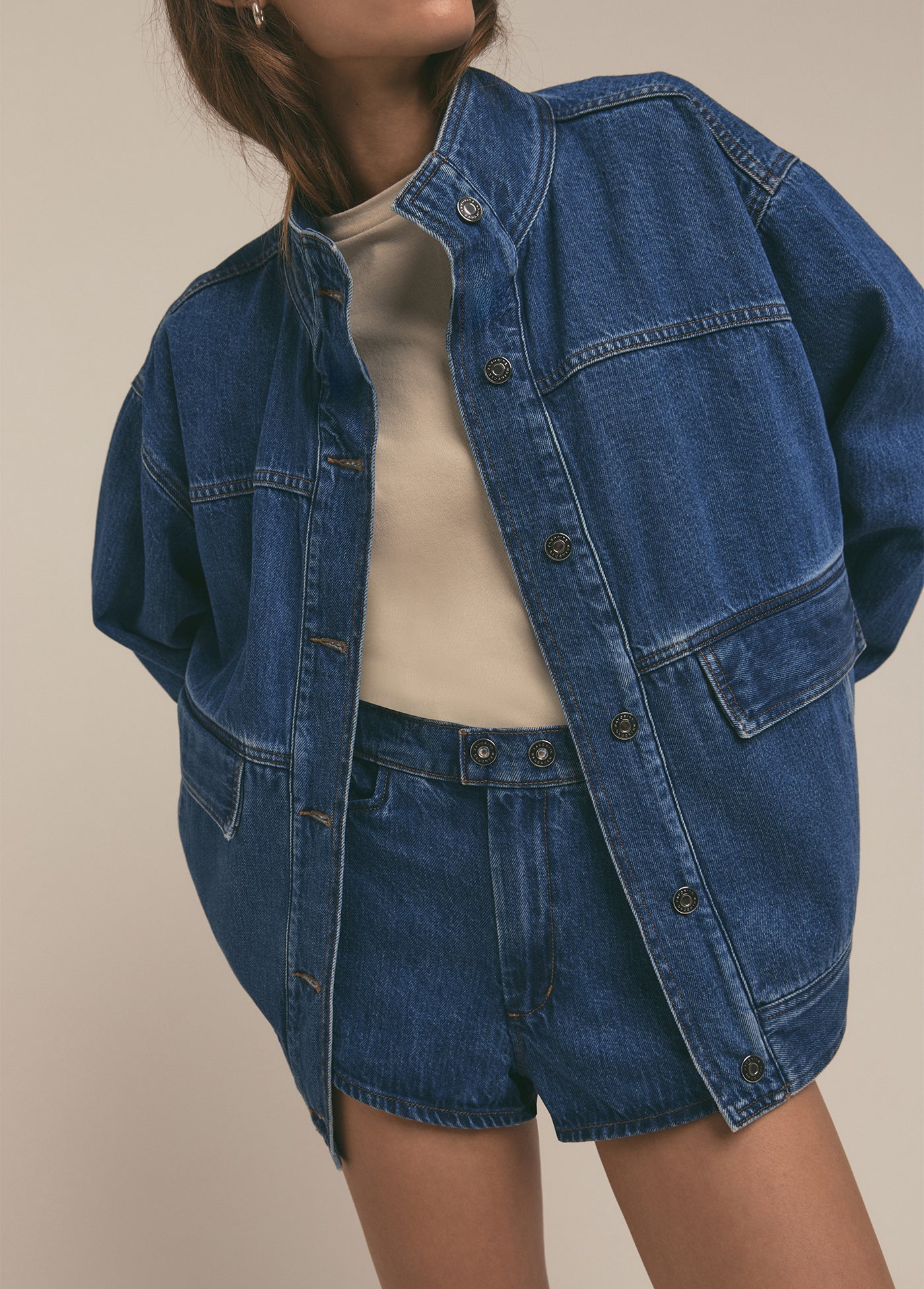 With a low rise and an easy fit through the waist and hips, these shorter shorts feature front slant pockets and back welt pockets. Plus, the classic medium-blue Los Angeles wash is cut from lightweight rigid denim, so they just get better with each wear.